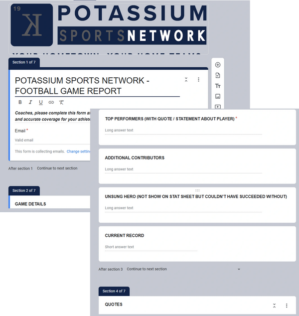 These questionnaires are designed by Potassium Sports Network — meaning the details we receive are the ones we specifically ask for.